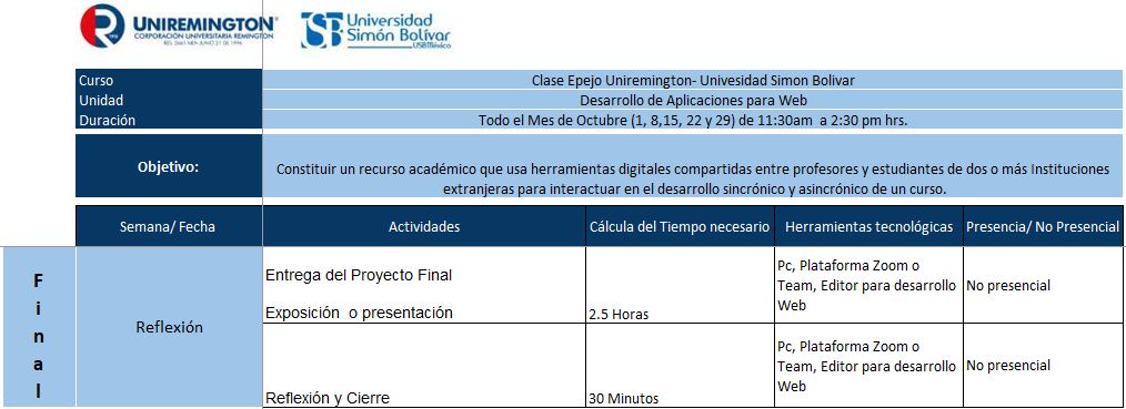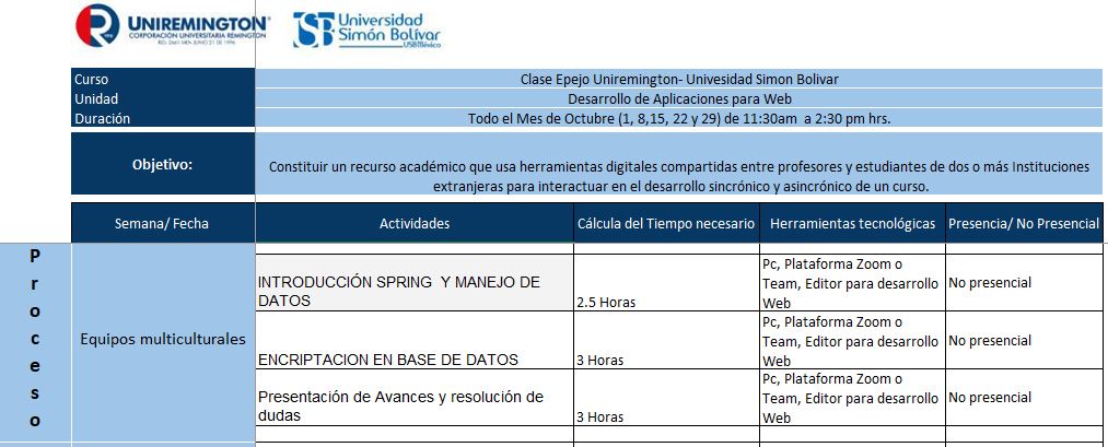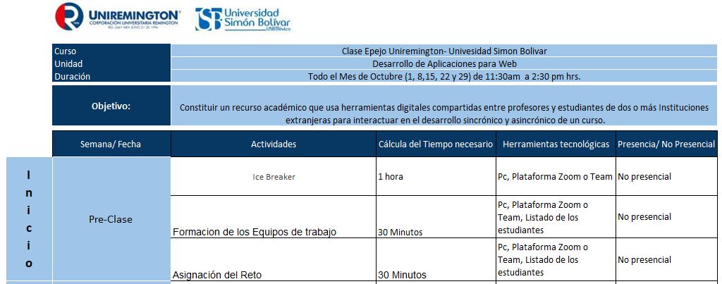 Tener presente las siguientes fechas para el desarrollo de la Clase Espejo Uniremington-Univesidad Simón Bolívar(USB)